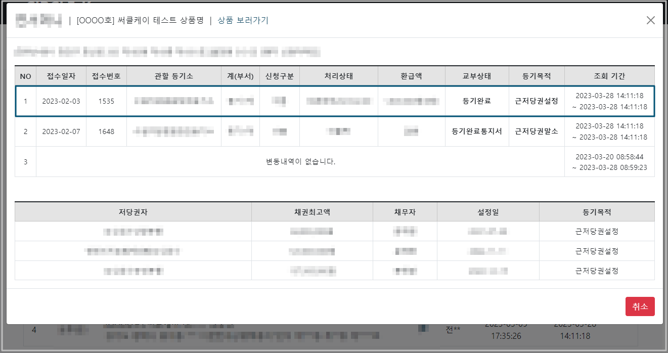깃발을 클릭하면, 마이 리스트에 추가됩니다. 마이 리스트에서는 등기 변경 상세 내역을 확인 할 수 있습니다.